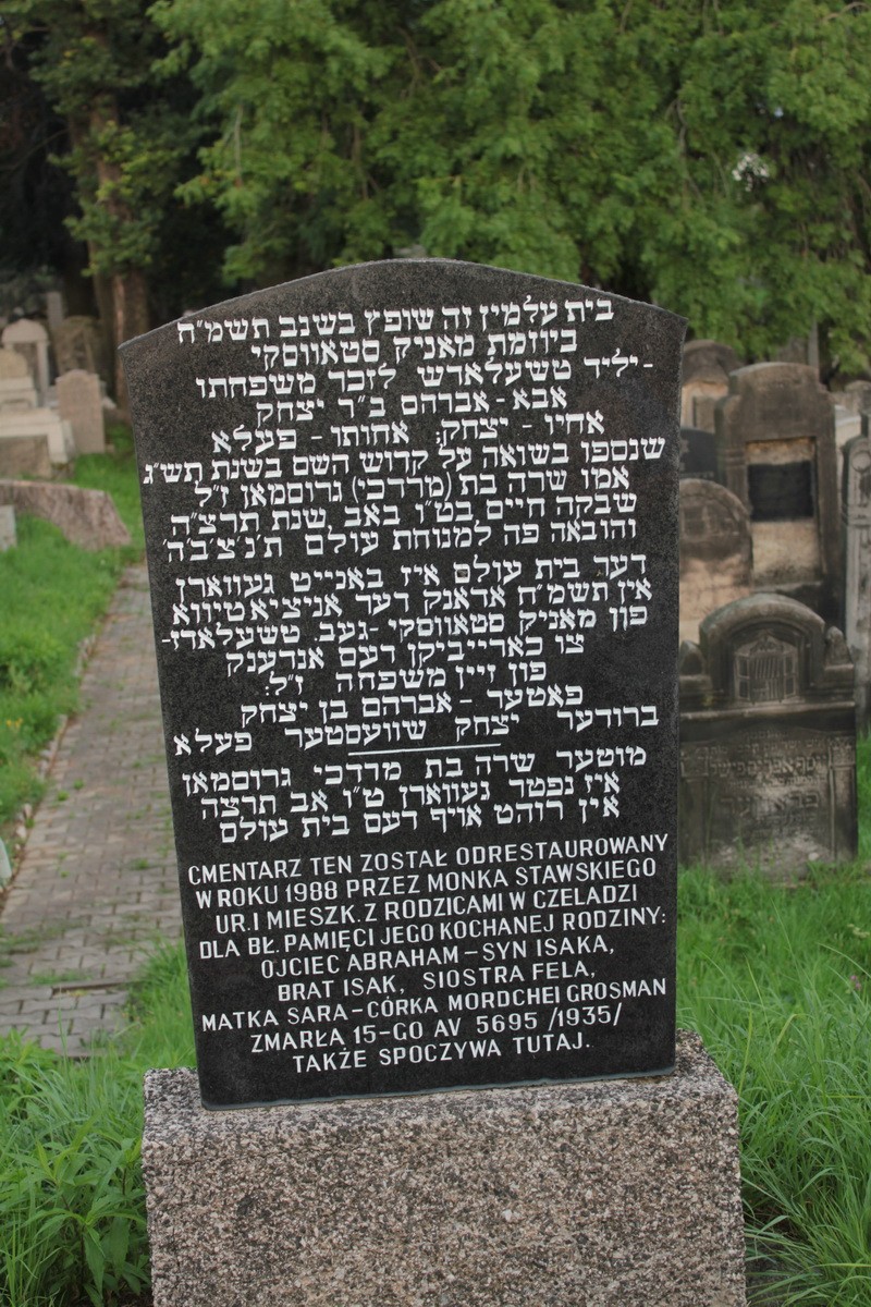 During World War II, Jews burnt in the synagogue were buried in the cemetery, as well as people murdered during the liquidation of the ghetto. The last burials took place in the second half of the 1940's.
