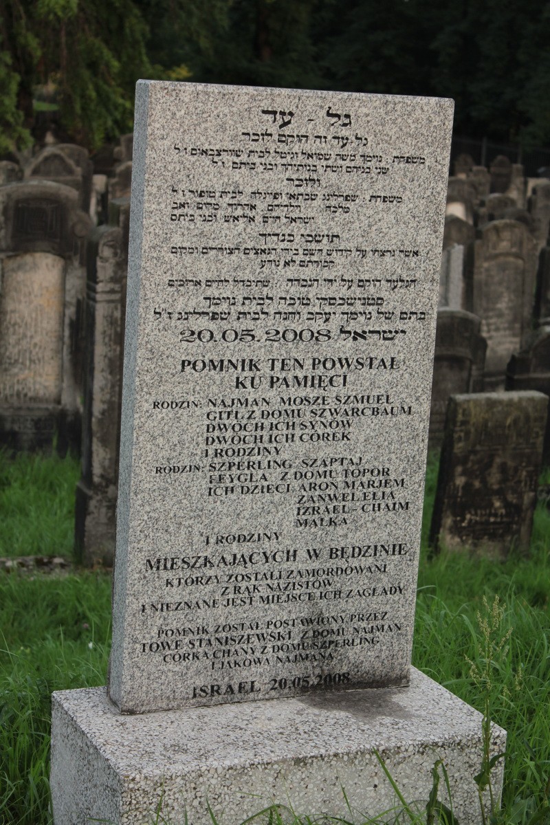 The cemetery in Czeladź was established in 1916, dividing the area into quarters for men, women and children. Due to the fact that the necropolis was common to the Jewish communities of Będzin and Czeladź, the area was also divided between them, and so the dead from Czeladź were buried in the front part of the cemetery, and the dead from Będzin in the rear part.